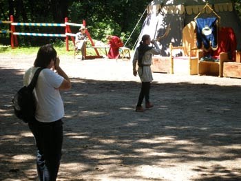 Честно говоря, я дождалась только бугурта (массовое побоище) и уехала. По программе еще должен был быть рыцарский турнир, мастер-класс средневекового танца (было бы интересно, но увы), средневековая музыка и конечно еще бугурты.Наконец участники поделились на команды и начали готовиться к сражению... По ристалищу прохаживался человек в майке и шортах, наверное рефери )))